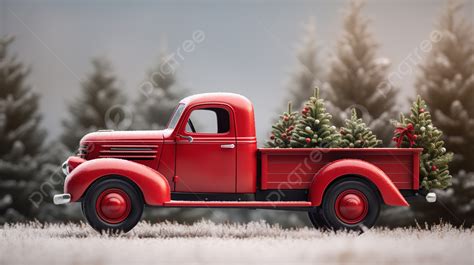 Red Truck With Christmas Tree